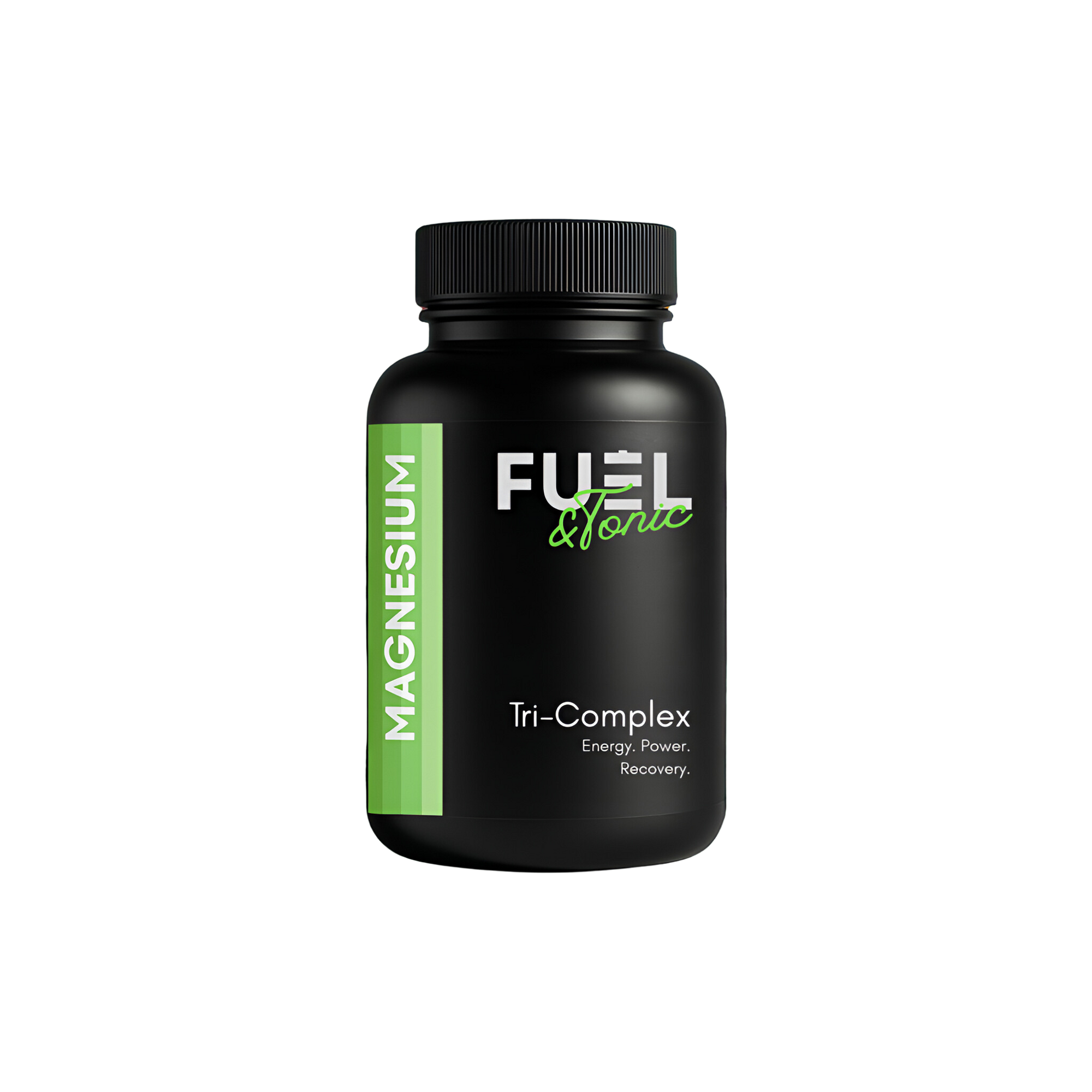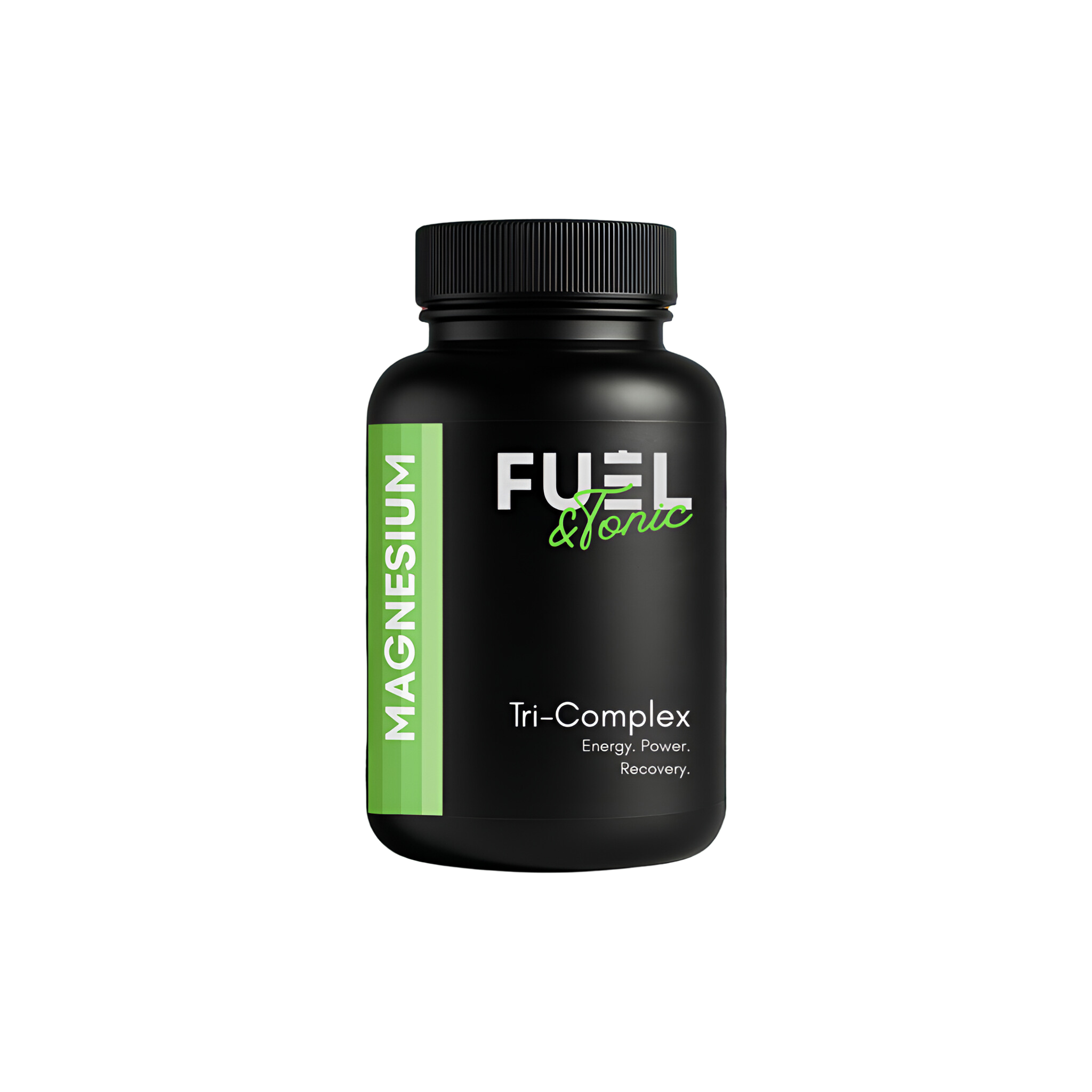 Fuel and Tonic’s Magnesium Tri-Complex combines Magnesium Bisglycinate, Magnesium Oxide and Magnesium Lactate to deliver fast, sustained and highly effective magnesium absorption. This advanced multi-source magnesium formula supports muscle recovery, reduces cramps, promotes restful sleep, supports the nervous system and helps combat fatigue — making it ideal for athletes, gym-goers and anyone managing stress, sleep and modern lifestyles.